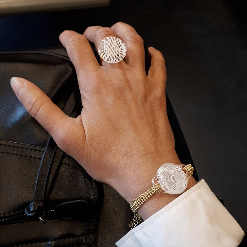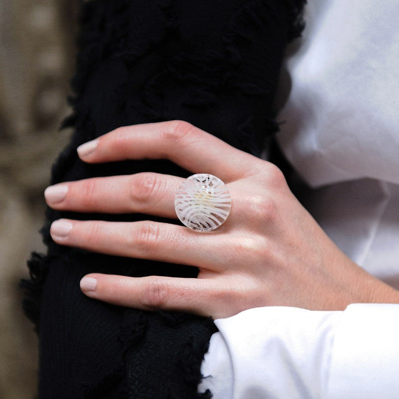 Nos bagues sont dessinées par Michèle Richer la fondatrice de Milodina. Ce sont des bagues exclusives made in France dessinées et finalisées par nos soins dont les parties en verre sont façonnées à la main par nos verriers de Murano.