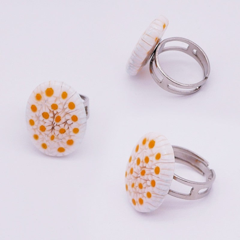 Murrine Ring or Millefiori Oval White and Yellow Color