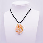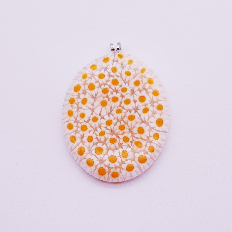Certified, authentic and artisanal murano necklace pendant in oval murrine or white and yellow millefiori